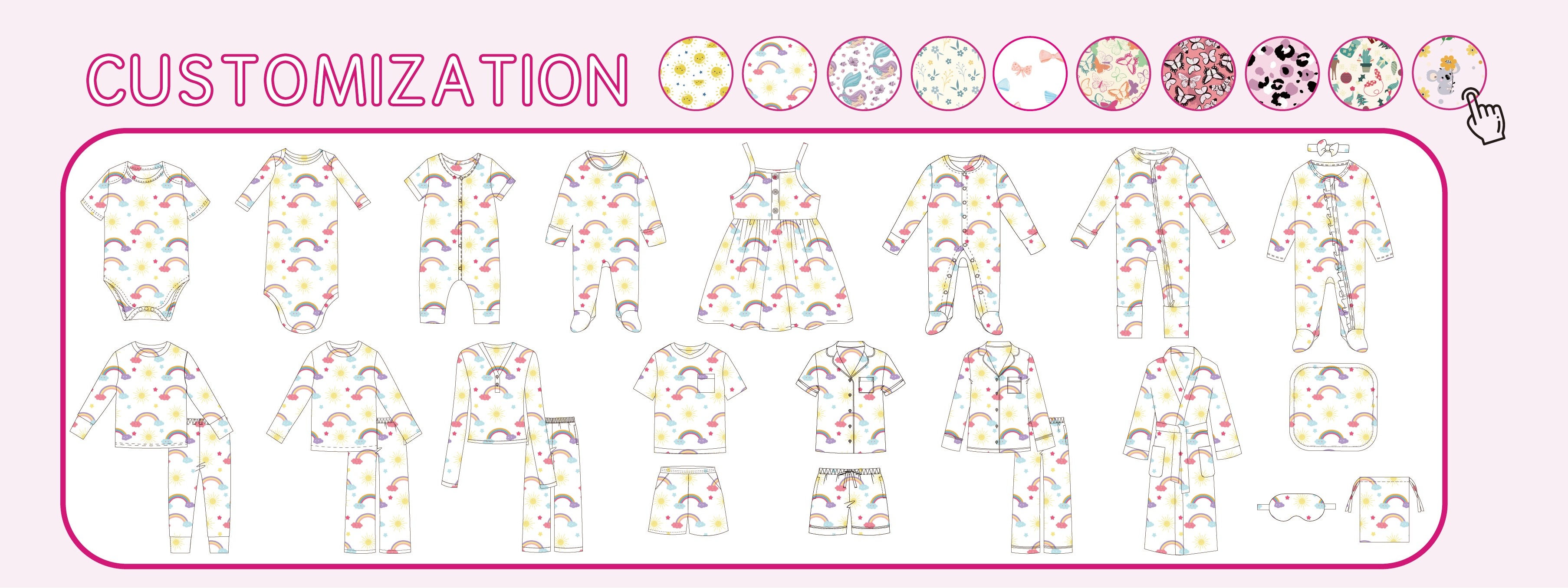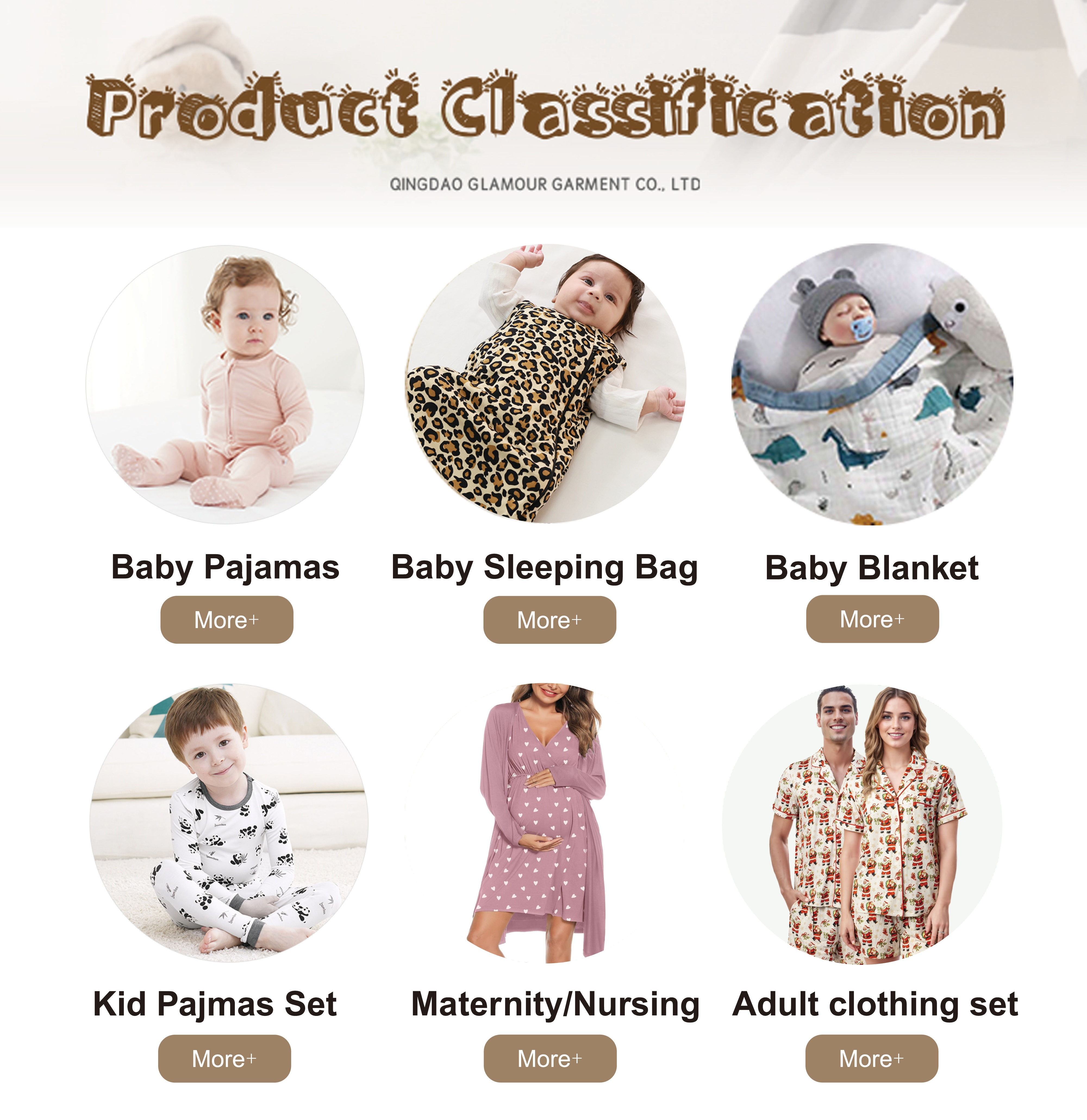 ผลิตภัณฑ์หลัก:ชุดรอมเปอร์ทารกชุดนอนเด็กถุงนอนทารกผ้าห่มและผ้าห่อตัวเด็กชุดเดรสเด็ก