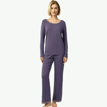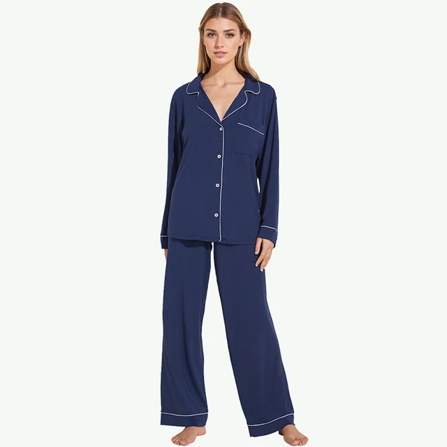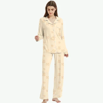 Wholesale Custom Women's Bamboo Fiber Sleepwear Set 2 Piece Home Wear with Button Long Sleeve Pajamas