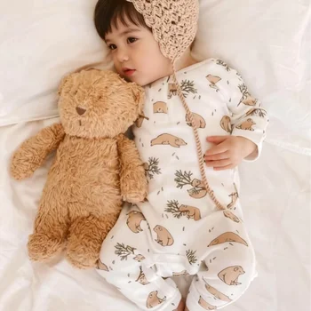 Custom Printed Organic Cotton Knit Autumn Baby Romper Set Bamboo Newborn Knitted Bubble Baby Clothes Winter New Born Baby Romper