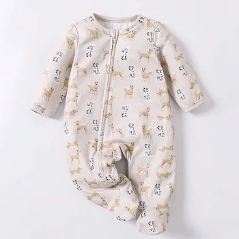 Wholesale Organic Bamboo Fiber Romper for Newborns Toddlers Basic Newborn Baby Clothing Long Sleeves Zipper Closure for Autumn